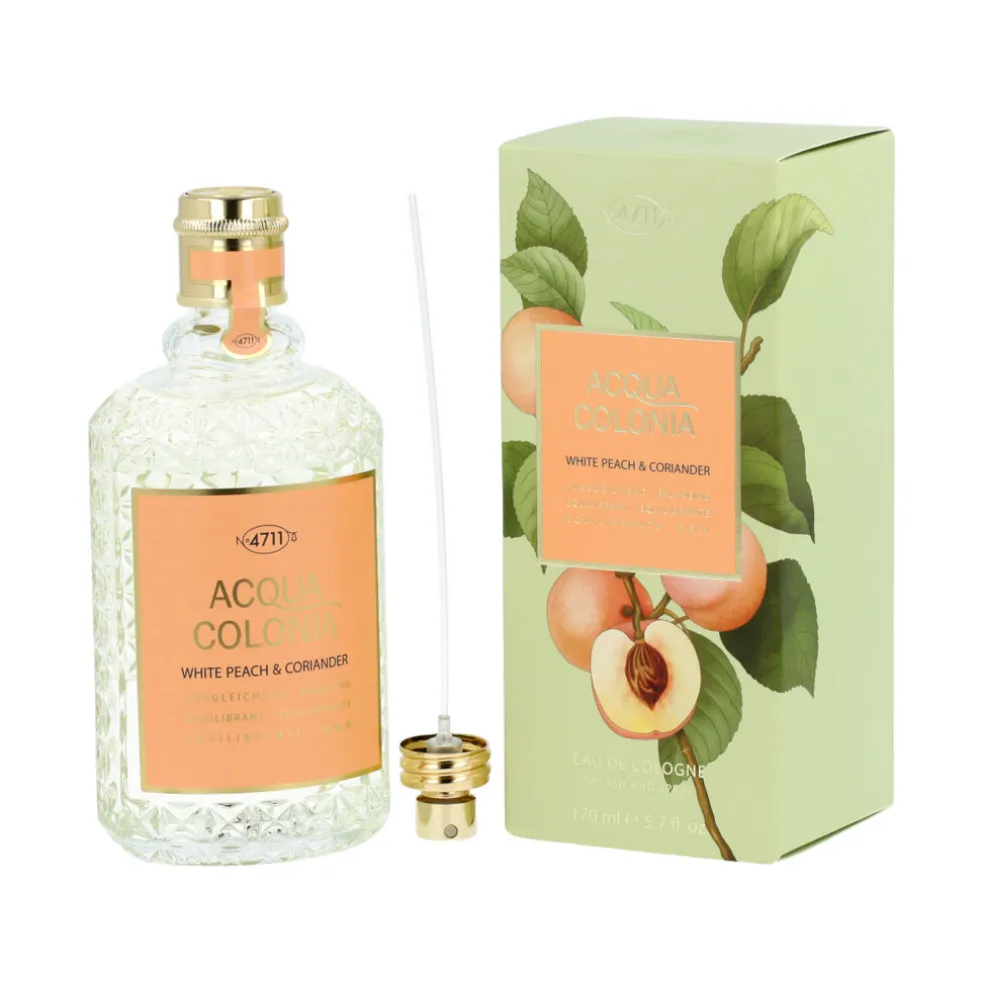 4711 Acqua Colonia White Peach & Coriander kombiniert die Süße von weißem Pfirsich mit einem aromatischen Hauch von Koriander und schafft so ein einzigartiges und erfrischendes Erlebnis. Dieser Duft ist ideal für alle, die einen leichten und frischen Duft suchen, der sich für den täglichen Gebrauch eignet. Der Flakon spiegelt die Frische und Sanftheit des Duftes wider, mit einem eleganten Design, das die Essenz der natürlichen Schönheit einfängt.