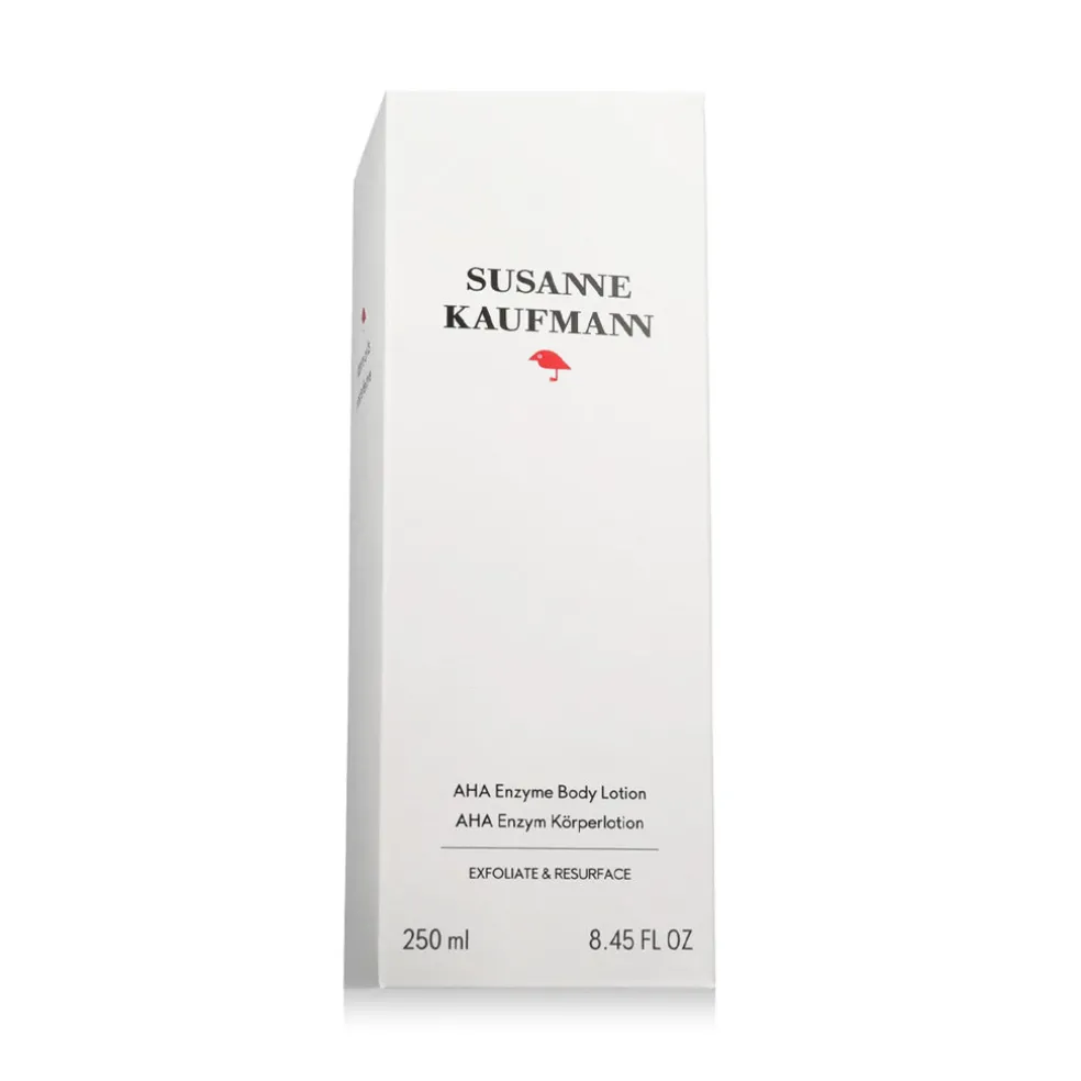 Susanne Kaufmann AHA Enzyme Body Lotion – eine Körperlotion mit milden Fruchtsäuren (AHA) und Enzymen, die die Haut sanft exfolieren und mit Feuchtigkeit versorgen. Diese luxuriöse, natürliche Körperlotion glättet das Hautbild, fördert die Hauterneuerung und -aufhellung und macht die Haut weich, geschmeidig und strahlend.