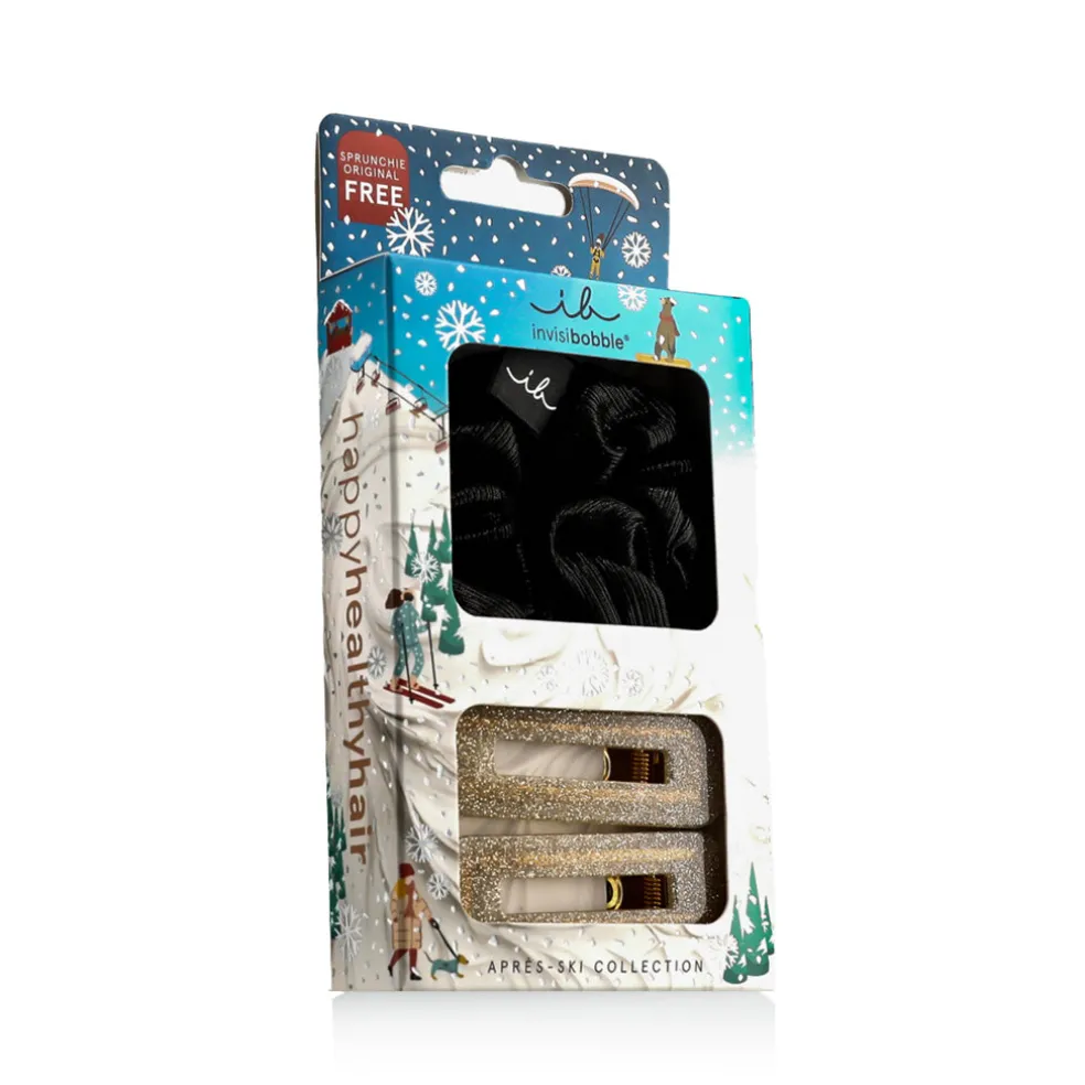 Mit dem Invisibobble Après Ski Date Night Set wird Ihre Frisur zum perfekten Teil eines jeden winterlichen Anlasses und schützt gleichzeitig Ihr Haar vor Schäden. Die perfekte Wahl für Frauen, die schön aussehen und sich wohlfühlen wollen!