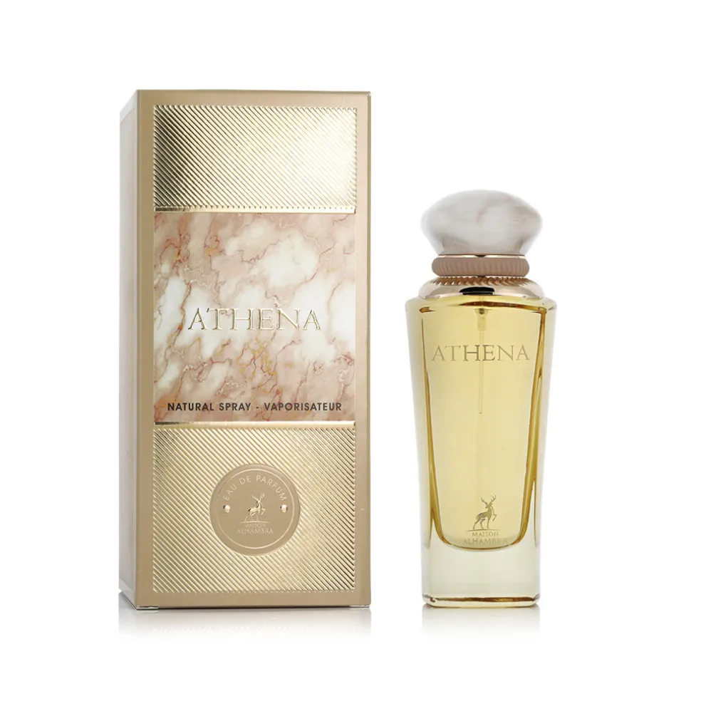 Athena von Maison Alhambra ist ein blumiges Damenparfüm, das 2025 lanciert wurde und von weiblicher Stärke, Eleganz und Sanftheit inspiriert ist. Benannt nach der antiken Göttin der Weisheit, ist der Duft ebenso facettenreich – er vereint Frische, Sinnlichkeit und Raffinesse. Er öffnet sich mit lebhaften Noten von Mandarine, die eine saftige Frische mit sich bringt, ergänzt durch einen subtil würzigen Hauch von rosa Pfeffer und spritziger Bergamotte. Dieser Auftakt ist voller Energie und femininer Vitalität.