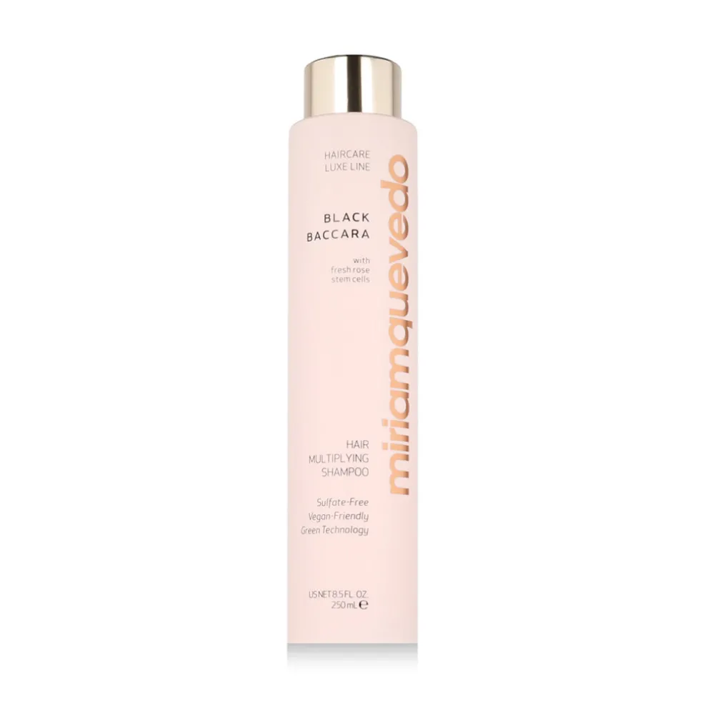 Miriam Quevedo Black Baccara Hair Multiplying Shampoo 250 ml ist ein luxuriöses, regenerierendes Shampoo, das das Haarwachstum fördert, die Haarstruktur stärkt und dem Haar seine Dichte und Vitalität zurückgibt. Dank seines Gehalts an Multi-Bond Filler repariert es wirksam geschädigte Haarbindungen und schützt das Haar vor chemischen, thermischen und mechanischen Schäden. Die exklusive Mischung aus Black Baccara Rose Youth und Rose Stem Cells hilft, die durch äußere Faktoren und den Lebensstil verursachte Haaralterung zu verhindern. Das Haar ist nach der Anwendung stärker, hydratisiert und gesünder.