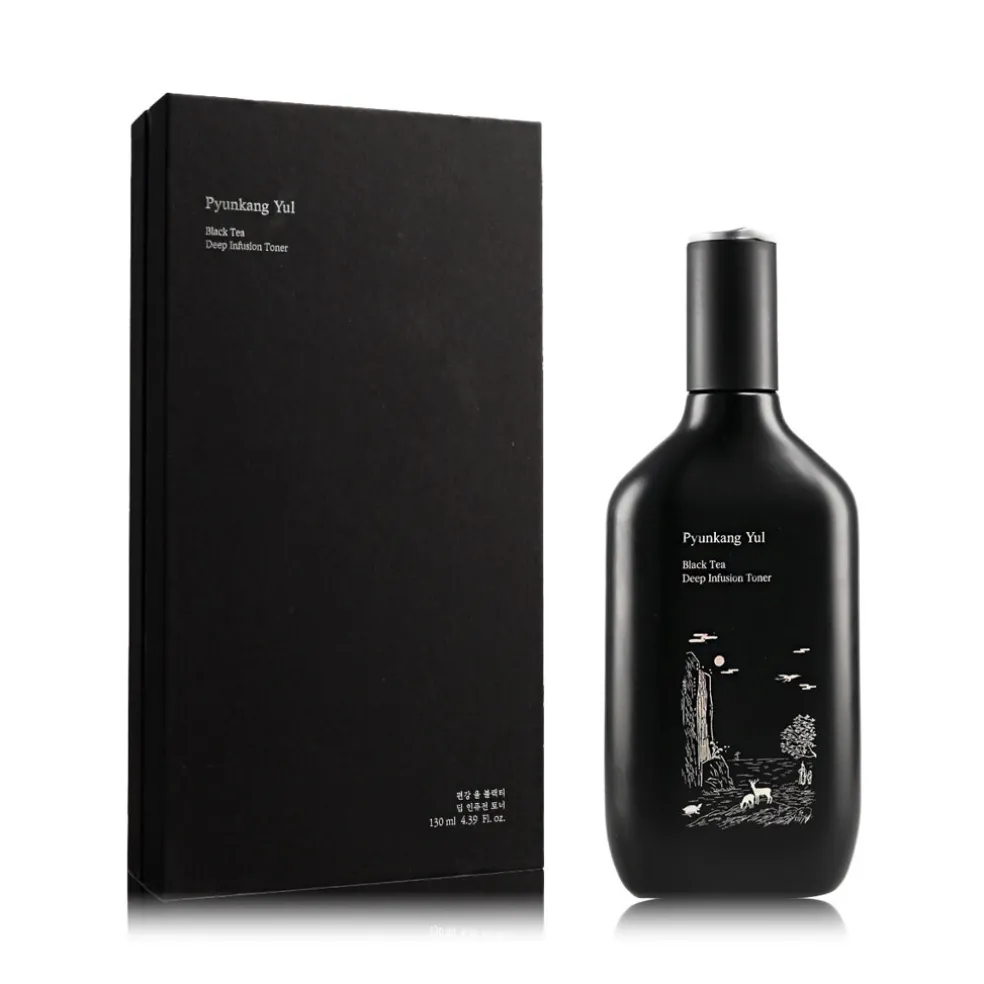 Pyunkang Yul Black Tea Deep Infusion Toner – feuchtigkeitsspendender Anti-Aging-Toner mit schwarzem Tee (130 ml) ist ein nährender Hauttoner, der die Haut intensiv mit Feuchtigkeit versorgt, sie festigt und vor den Zeichen der Hautalterung schützt. Dank des Inhalts von fermentiertem Schwarztee (Kombucha), Peptiden und Adenosin hilft es, die Elastizität der Haut zu verbessern, feine Linien zu reduzieren und ihr ein gesundes, strahlendes Aussehen zu verleihen.