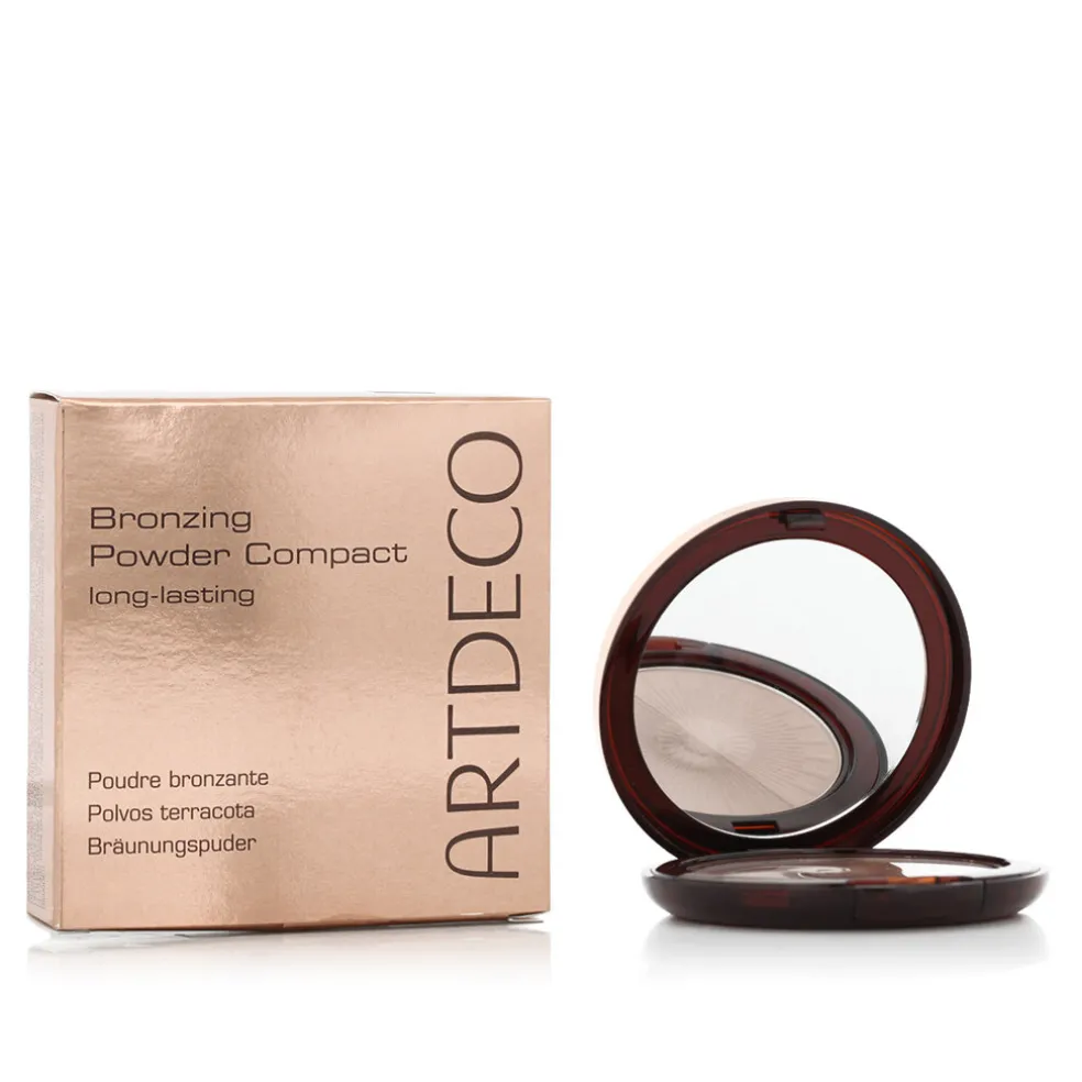 Kompaktes Bronzepulver. Sorgt für eine natürlich wirkende Bräune, ist wasserfest und hält den ganzen Tag auf der Haut.