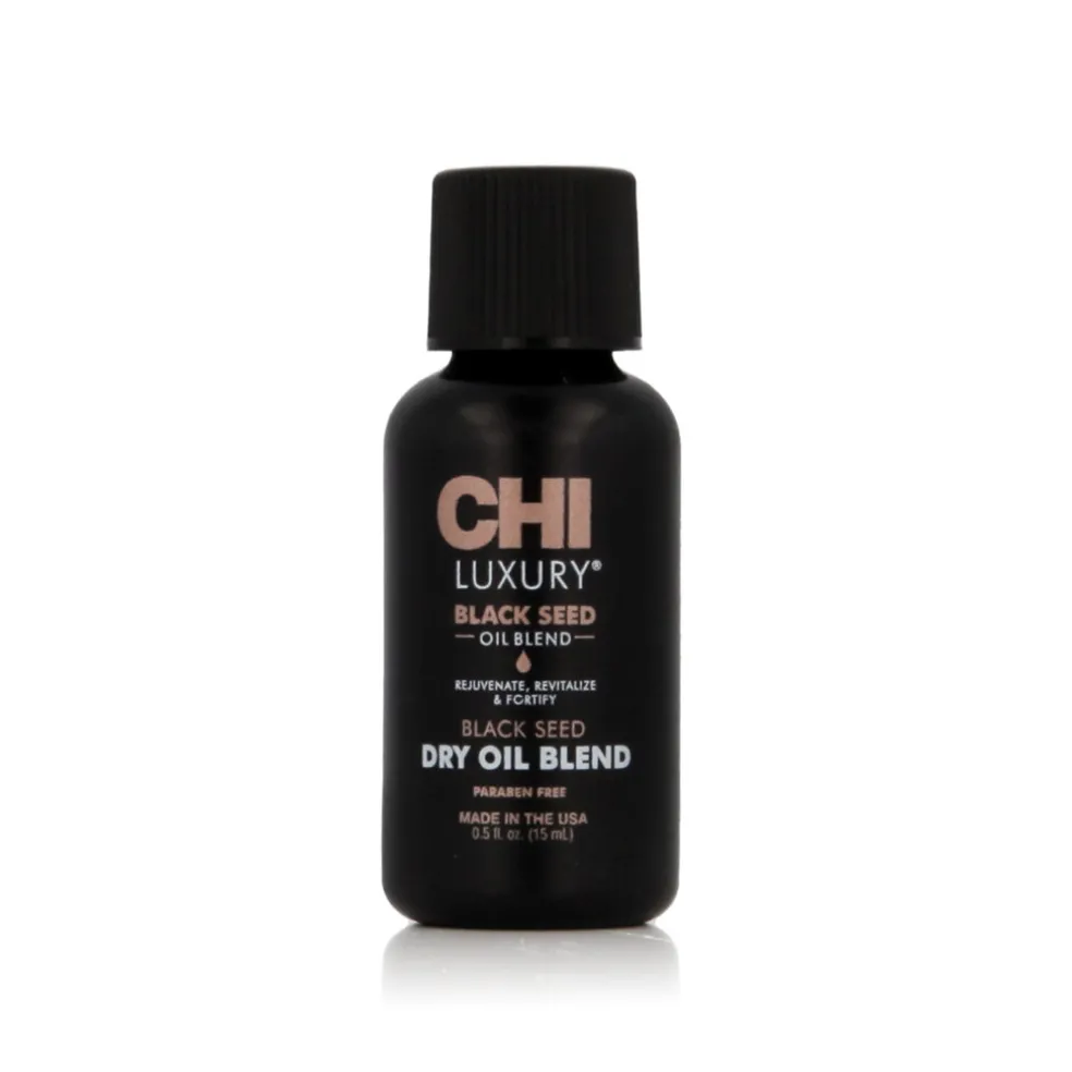 Farouk Systems CHI Luxury Black Seed Oil Dry Oil 15 ml ist ein luxuriöses Trockenöl für das Haar, angereichert mit Schwarzkümmelöl, das das Haar tiefgehend nährt, glänzt und schützt, ohne es zu beschweren. Dieses multifunktionale Produkt ist für alle Haartypen geeignet, insbesondere für trockenes, geschädigtes oder chemisch behandeltes Haar, dem es Geschmeidigkeit, Glätte und Vitalität verleiht.