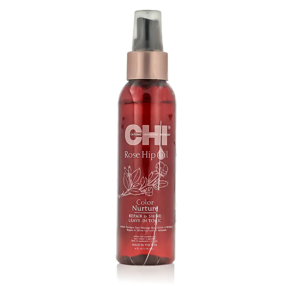 Farouk Systems CHI Hagebuttenöl Color Nurture Repair & Shine Leave-In Tonic 118 ml ist ein reparierendes und verschönerndes Tonic für gefärbtes Haar, das Feuchtigkeit spendet, es stärkt und ihm Glanz verleiht, während es die Farbe schützt und das gesunde Aussehen des Haares wiederherstellt. Es ist angereichert mit Hagebuttenöl, Vitamin C und einem Antioxidantienkomplex, der das Haar vor dem Verblassen und vor Schäden schützt.