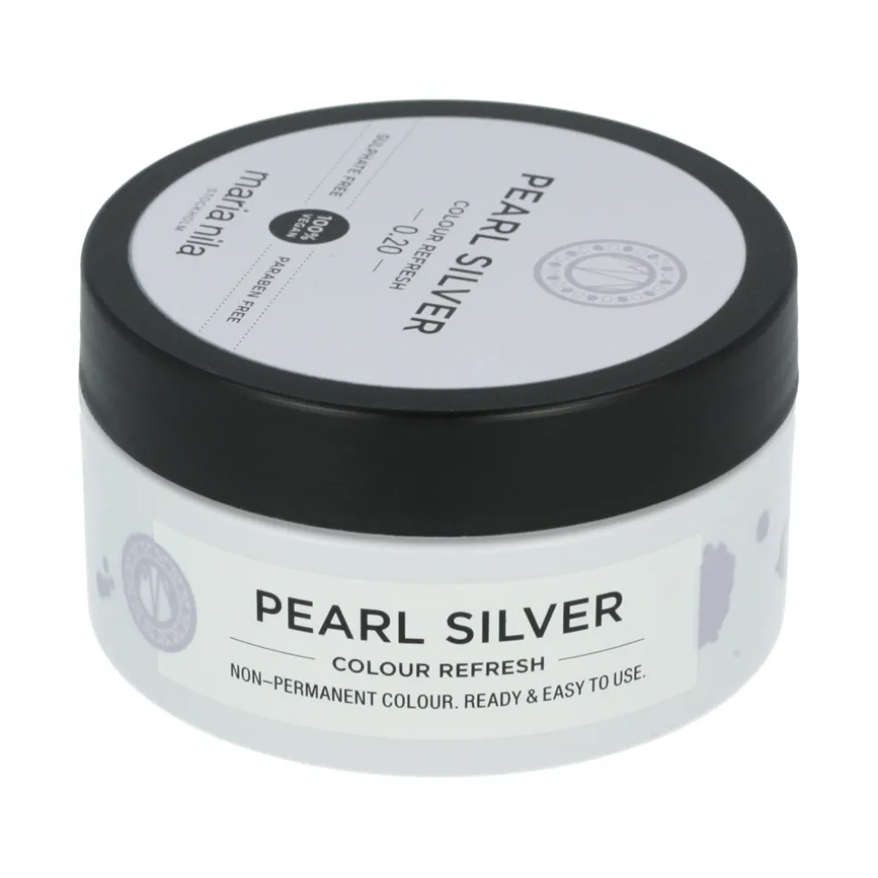 Maria Nila Colour Refresh Haarmaske mit Farbpigmenten Pearl Silver 100 ml ist eine sanft pflegende Maske, die dem Haar einen eleganten Silberton mit subtilen Perlentönen verleiht. Ideal, um Gelbtöne in hellem oder grauem Haar zu neutralisieren, die Farbe aufzufrischen oder um vorübergehend mit kühlen Farbtönen zu experimentieren. Dank des enthaltenen Arganöls spendet die Maske dem Haar intensive Feuchtigkeit und nährt es, so dass es glatt und glänzend wird. Die Farbe wäscht sich allmählich aus und ermöglicht so einen flexiblen Wechsel.