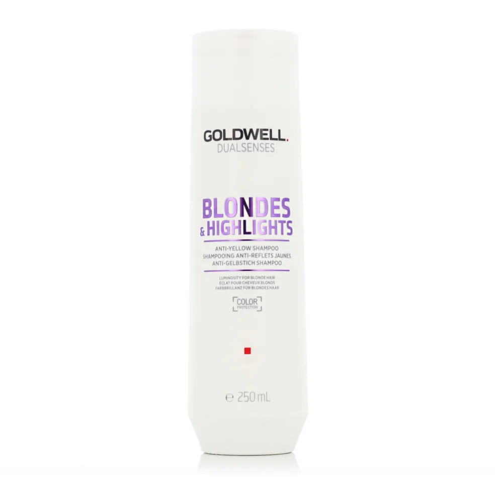 DasGoldwell Dualsenses Blondes & Highlights Anti-Yellow Shampoo 250 ml ist ein professionelles Shampoo für die Pflege von blondem und strähnigem Haar, das unerwünschte Gelbstiche effektiv neutralisiert und einen kühlen Farbton erhält. Dank der enthaltenen violetten Pigmente sorgt das Shampoo für einen sofortigen Anti-Gelb-Effekt, während die pflegenden Inhaltsstoffe für gesund aussehendes Haar sorgen und seine Ausstrahlung verlängern.