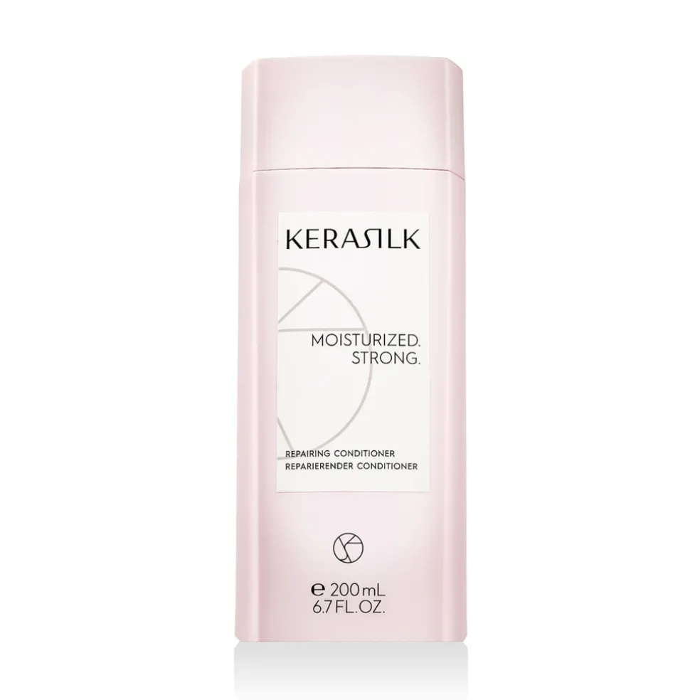 KERASILK Essentials Repairing Conditioner (200 ml) ist eine Intensivspülung für geschädigtes, trockenes oder chemisch behandeltes Haar, die ihm Kraft, Elastizität und ein gesundes Aussehen zurückgibt. Die Formel mit biomimetischer Seide und Lotusextrakt sorgt für eine tiefe Regeneration der Haarfaser, erleichtert das Entwirren und schützt das Haar vor weiterem Haarbruch und Trockenheit.