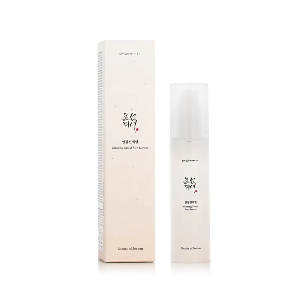 Ginseng Moist Sun Serum von BEAUTY OF JOSEON, ein innovatives Sonnenserum mit SPF 50+ PA++++, das die tägliche Anwendung von Sonnenschutz in puren Genuss verwandelt. Das Serum mit der leichten Formel lässt sich leicht verteilen, zieht schnell ein und hinterlässt keine Rückstände auf der Haut. Stattdessen spendet es der Haut Feuchtigkeit und erfrischt sie. Das Serum enthält 30 % Ginsengextrakt, einen traditionellen koreanischen Inhaltsstoff, der für seine nährenden und Anti-Aging-Eigenschaften bekannt ist. Es ist die perfekte Wahl für alle, die einen wirksamen und zugleich nährenden Sonnenschutz suchen.
