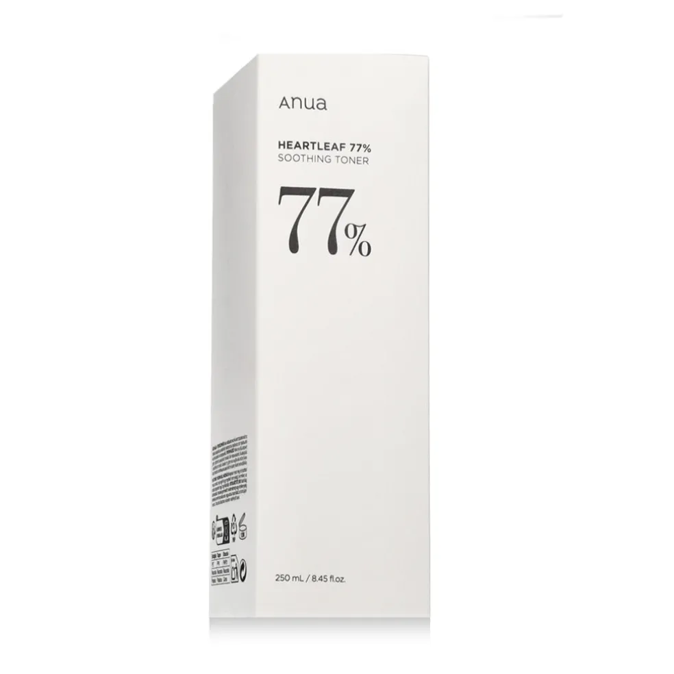 Anua Heartleaf 77% Soothing Toner ist ein äußerst beliebtes beruhigendes Gesichtswasser mit 77% Heartleaf-Extrakt, das die Haut sofort beruhigt, mit Feuchtigkeit versorgt und ihre Regeneration unterstützt. Es ist ideal für empfindliche, gereizte und zu Akne neigende Haut, da es hilft, Rötungen zu reduzieren, den Talg zu regulieren und die Hautbarriere zu stärken. Es hat eine leichte, wässrige Textur, die schnell einzieht, ohne zu kleben, und eignet sich auch zum Auftragen in Schichten (Tonerschicht).