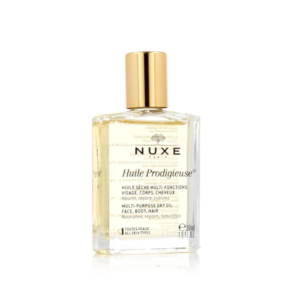NUXE Huile Prodigieuse 50 ml Miracle Dry Multifunktionsöl für Gesicht, Körper und Haar nährt, regeneriert und macht Ihre Haut und Ihr Haar weich dank seiner einzigartigen, hochkonzentrierten Formel aus wertvollen Pflanzenölen (Borretschöl, Johanniskrautöl, Mandelöl, Kamelienöl, Haselnussöl, Macadamiaöl) und Vitamin E. Das Öl hat eine nicht fettende Textur. Das Parfüm ist nicht lichtempfindlich. Es enthält keine Silikone oder Mineralöle. Es enthält 6 wertvolle Pflanzenöle. 97,8 % der Inhaltsstoffe sind pflanzlichen Ursprungs. Dieses Öl ist seit vielen Jahren die Nummer 1 in Frankreich. Dieses Öl enthält keine Parabene!