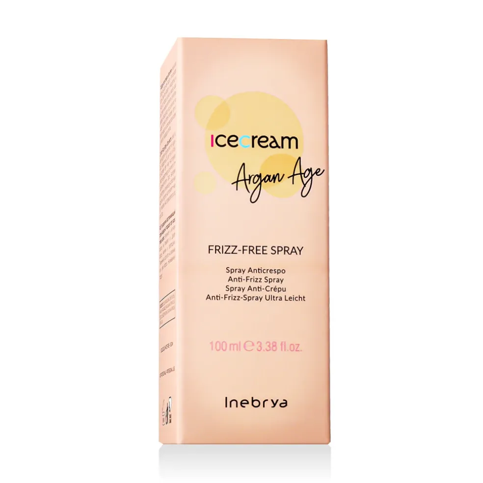 Inebrya Ice Cream Argan-Age Frizz-Free Spray 100 ml ist ein leichtes , nicht ausspülbares Spray mit Arganöl, das Frizz wirksam bekämpft, das Haar glättet und ihm einen schönen Glanz verleiht. Es ist ideal für trockenes, widerspenstiges und chemisch behandeltes Haar und bietet sofortige Feuchtigkeitszufuhr und Schutz vor Feuchtigkeit und äußeren Schäden.