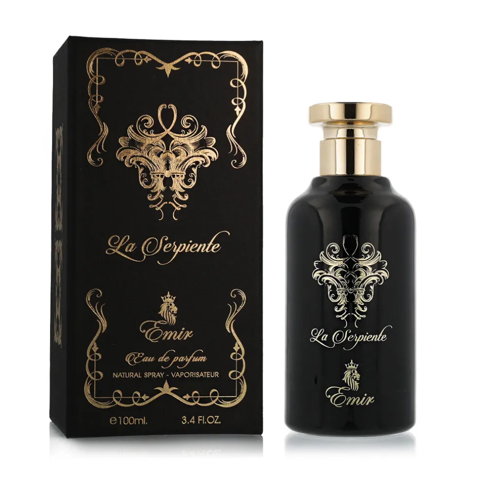 Emir La Serpiente ist ein Eau de Parfum, das Geheimnis, Macht und hypnotische Sinnlichkeit verkörpert. Dieser anspruchsvolle und fesselnde Duft kombiniert würzige, holzige und orientalische Noten zu einer unwiderstehlichen Komposition voller Tiefe und Eleganz. Er öffnet sich mit dunklen, verführerischen Akkorden von Safran, schwarzem Pfeffer und Trockenfrüchten, die dem Duft Intensität und Mystik verleihen. Im Herzen entfaltet sich eine sinnliche Kombination aus Rose, Weihrauch und Leder, die dem Parfüm eine orientalische Raffinesse und dunkle Eleganz verleiht. Die Basis ist tief und lang anhaltend und besteht aus Oud-Holz, Patchouli und Ambra, die eine hypnotische und unvergessliche Spur hinterlassen.