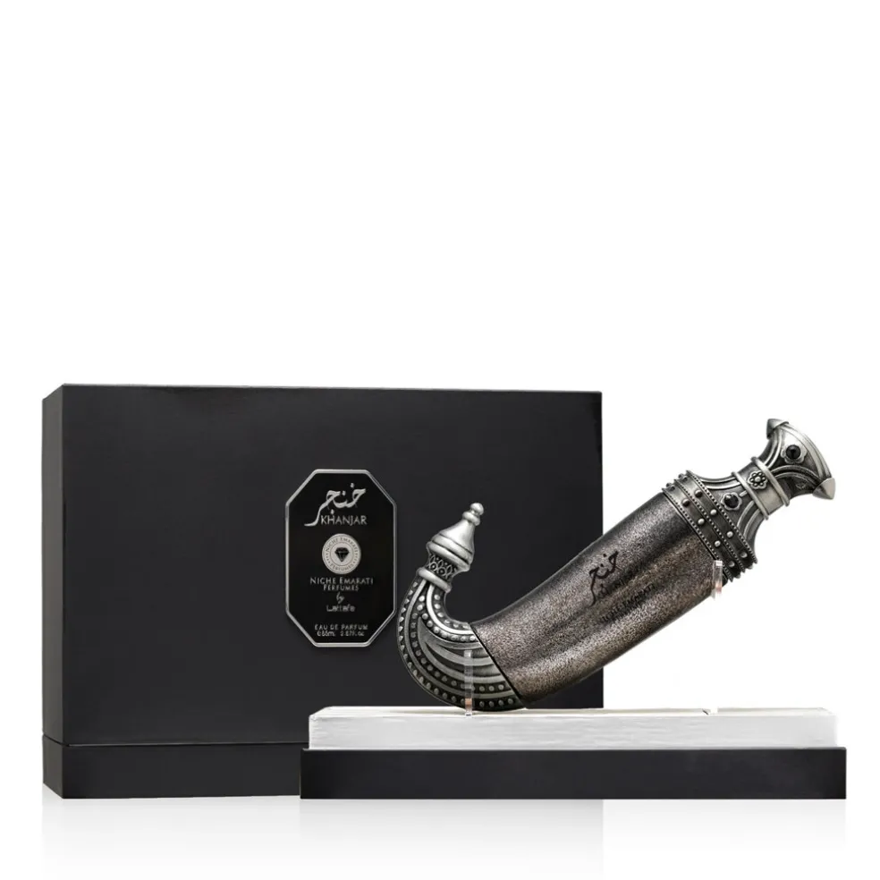 Khanjar Parfüm von Lattafa Perfumes ist ein kühner und würziger Duft aus der Niche Emarati Kollektion, der Kraft und Eleganz zu einem einzigartigen Erlebnis verbindet. In der Kopfnote sorgen würzige Muskatnuss, frischer Ingwer und scharfer Piment für einen dynamischen und anregenden Auftakt.