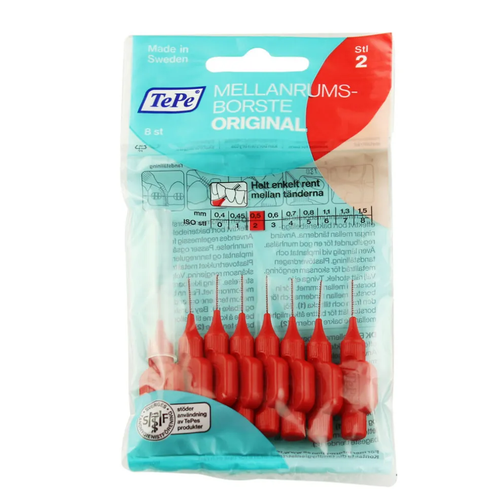 TePe Original Interdentalbürsten 2 Rot (0,5 mm) sind die perfekte Wahl für Menschen mit mittelgroßen Zahnzwischenräumen, die ihr Zahnfleisch und ihre Zähne durch regelmäßiges, sanftes Putzen gesund und sauber halten möchten.