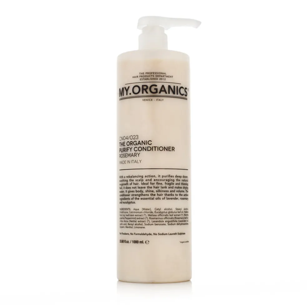 MY.ORGANICS The Organic Purify Conditioner Rosemary 1000 ml ist ein Conditioner, der das Gleichgewicht der Kopfhaut wiederherstellt und das Haar revitalisiert. Er enthält Rosmarin-Extrakt, der die Haarwurzeln stärkt, die Mikrozirkulation fördert und das Haar frisch, leicht und gesund macht. Diese Spülung ist die ideale Wahl für fettiges Haar oder für Haar, das zu einem Ungleichgewicht der Kopfhaut neigt.