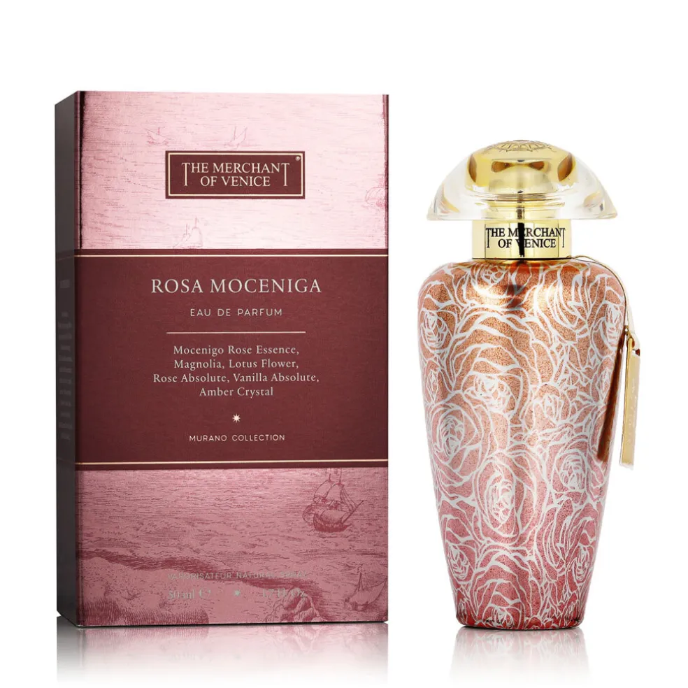 Rosa Moceniga von The Merchant of Venice ist ein Fest der weiblichen Eleganz und Raffinesse, eingefangen in einem wunderschönen blumigen Duft. Er wurde 2016 lanciert und erzählt die Geschichte von Rosen, die im Herzen romantischer Gärten blühen, wo jeder Atemzug ein Hauch von Luxus und Raffinesse ist.