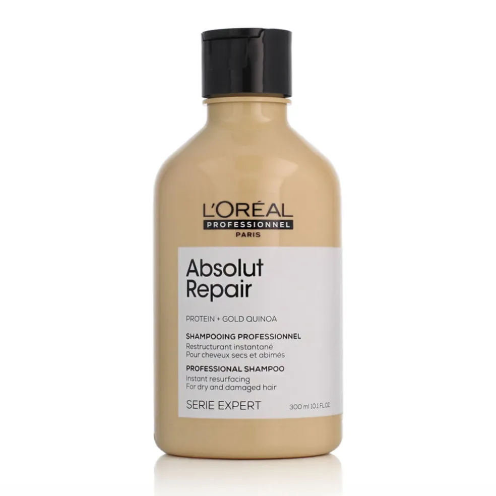 Das L’Oréal Professionnel Serie Expert Absolut Repair Protein + Gold Quinoa Shampoo 300 ml ist ein aufbauendes Shampoo für empfindliches und geschädigtes Haar, das seine Struktur wiederherstellt, es weich macht und ihm einen gesunden Glanz verleiht. Dank der fortschrittlichen Co-Emulsions-Technologie und dem Gold-Quinoa-Extrakt glättet das Shampoo die Haarfaser effektiv und macht das Haar weich, geschmeidig und revitalisiert.