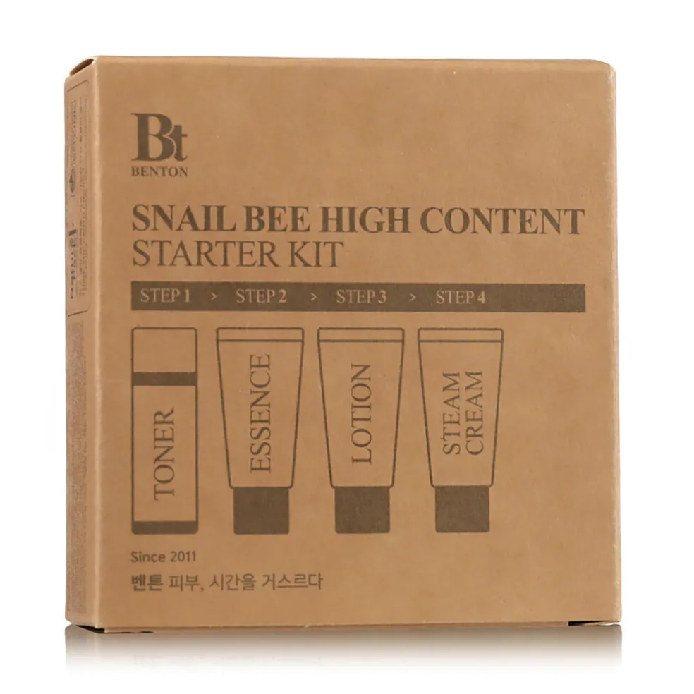 Das BENTON Snail Bee High Content Starter Kit ist ein praktisches Set mit vier Produkten aus der Snail Bee High Content Serie, die für ihre regenerierenden und revitalisierenden Eigenschaften bekannt ist. Die wichtigsten Inhaltsstoffe sind Schneckenfiltrat und Bienengift, die die Elastizität der Haut fördern, den Hautton vereinheitlichen und die Hautstruktur verbessern. Dieses Set eignet sich perfekt zum Ausprobieren der Produkte, als Geschenk oder für unterwegs.