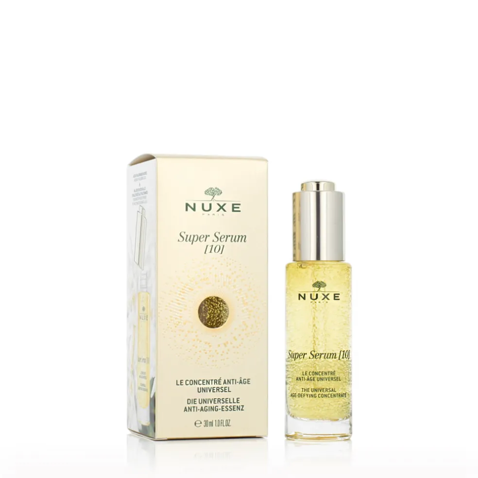 Nuxe Super Serum [10] 30 ml ist ein außergewöhnliches Anti-Age-Serum mit einer innovativen Formel, die die natürliche Regeneration der Haut stimuliert, Falten glättet, den Hautton vereinheitlicht und die Hautstruktur verbessert. Es kombiniert die Kraft der Hyaluronsäure, Millionen von Mikrokügelchen aus pflanzlichen Ölen und die patentierte Technologie von NUXE für einen umfassenden Verjüngungseffekt.