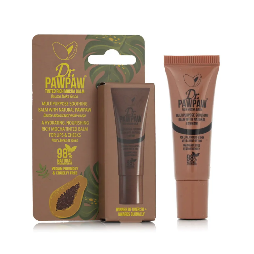 Für vielseitige Tages- und Abendlooks. Entdecken Sie den Dr. PawPaw Tinted Balm Rich Mocha, universell einsetzbar für Lippen, Wangen und Augen. Dieser Balsam hellt Ihren Teint sofort mit einer leicht aufzutragenden braunen Tönung auf, die perfekt für den Übergang vom Tag zum Abend ist.