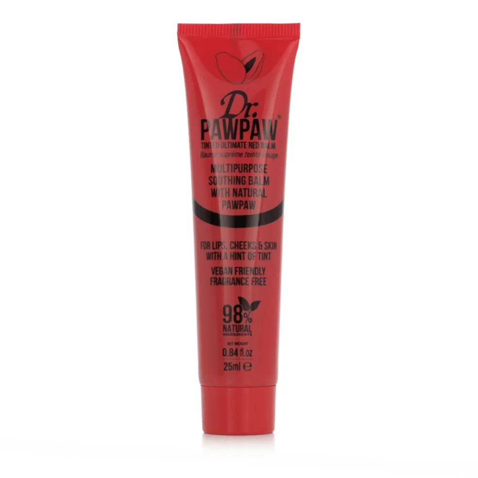 Für vielseitige Tages- und Abendlooks. Entdecken Sie den Dr. PawPaw Tinted Balm Ultimate Red, der universell für Lippen, Wangen und Augen einsetzbar ist. Dieser Balsam hellt Ihren Teint sofort mit einem leicht aufzutragenden, intensiven Rotton auf, der perfekt für den Übergang vom Tag zum Abend ist.