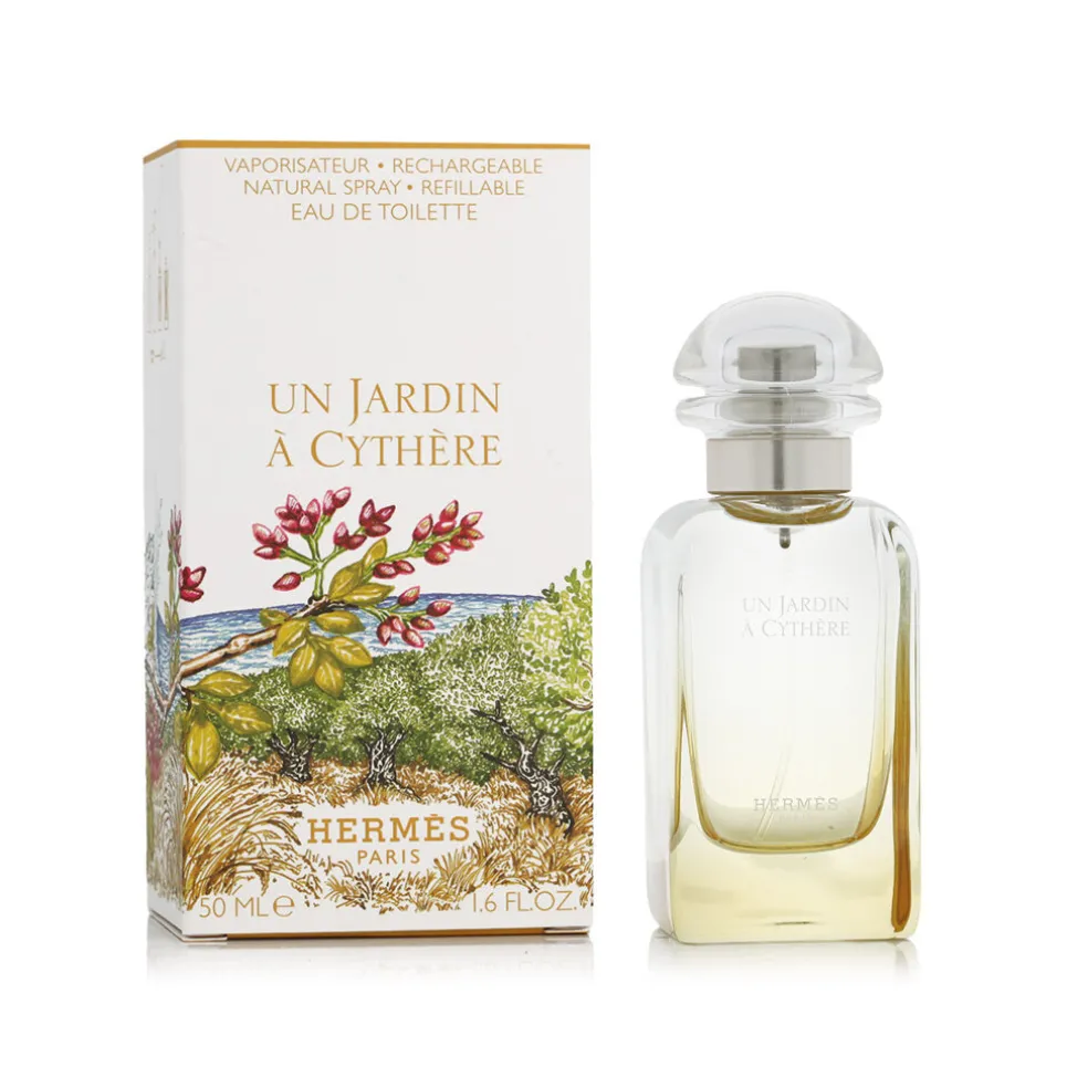 Un Jardin à Cythère von Hermès, Teil der kultigen „Un Jardin“-Serie , ist ein poetischer Duft, der Sie in einen Garten voller Sinnlichkeit und Geheimnisse einlädt, versteckt in der mythischen Inselidylle von Cythéra.