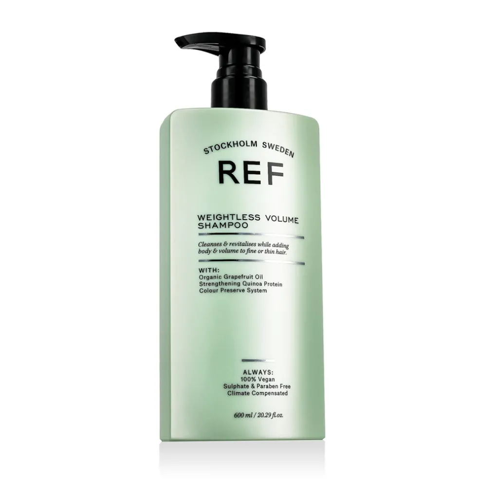 REF Weightless Volume Shampoo 600 ml ist ein leichtes, volumengebendes Shampoo, das dem Haar Flaum, Fülle und natürliche Bewegung verleiht, ohne es zu beschweren. Mit Pflanzenextrakten und Proteinen stärkt es die Haarfasern, hebt sie vom Ansatz an und sorgt für lang anhaltendes , luftiges Volumen. Ideal für feines und schlaffes Haar, das zusätzliche Leichtigkeit und Vitalität benötigt.