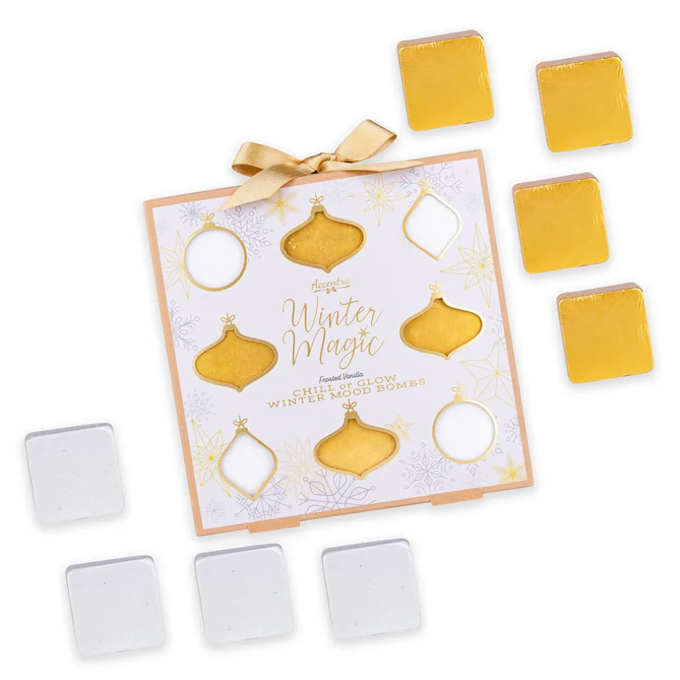 Accentra Winter Magic Frosted Vanilla Chill or Glow Winter Mood Bombs ist ein luxuriöses Set von prickelnden Badebomben, die ein Dufterlebnis mit einem Hauch von Vanille bieten. Diese Geschenksammlung enthält 8 Badebomben mit einem Gewicht von 30 g, die eine entspannende Atmosphäre schaffen und einen Hauch von Winterzauber in Ihr Bad bringen.