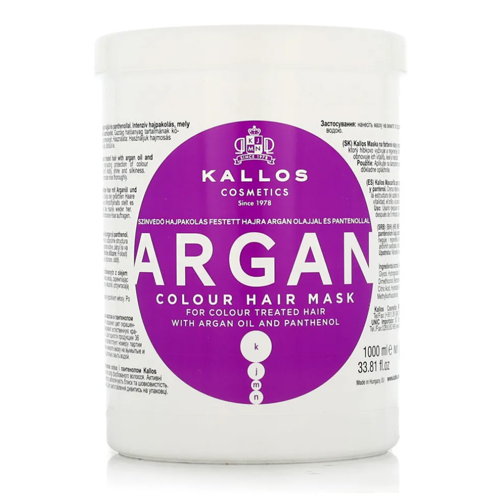 Kallos Argan Colour Hair Mask 1000 ml ist eine regenerierende Maske für coloriertes Haar mit Arganöl, die dem Haar nach chemischen Behandlungen Vitalität und Glanz zurückgibt. Dank des Gehalts an Arganöl und Leinöl spendet sie intensive Nährstoffe, erhöht die Elastizität der Haarfaser und schützt die Farbe vor dem Verblassen. Die Maske ist ideal, um die Farbbrillanz zu erhalten und das Haar insgesamt zu regenerieren.
