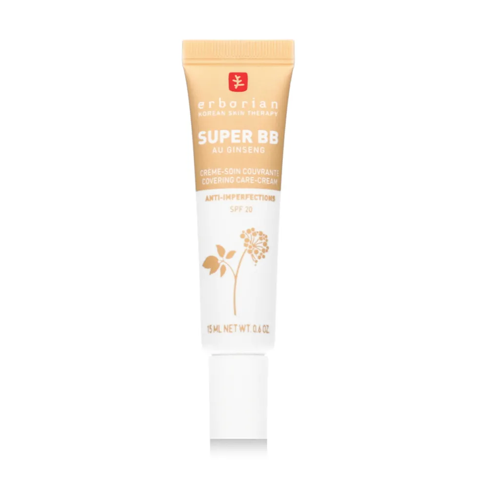 Erborian BB Super SPF 20 15 ml – eine multifunktionale BB-Creme, die Hautpflege und dezentes Make-up kombiniert. Dieses Produkt spendet Feuchtigkeit, schützt und vereinheitlicht den Hautton und verleiht ein natürliches und makelloses Aussehen.