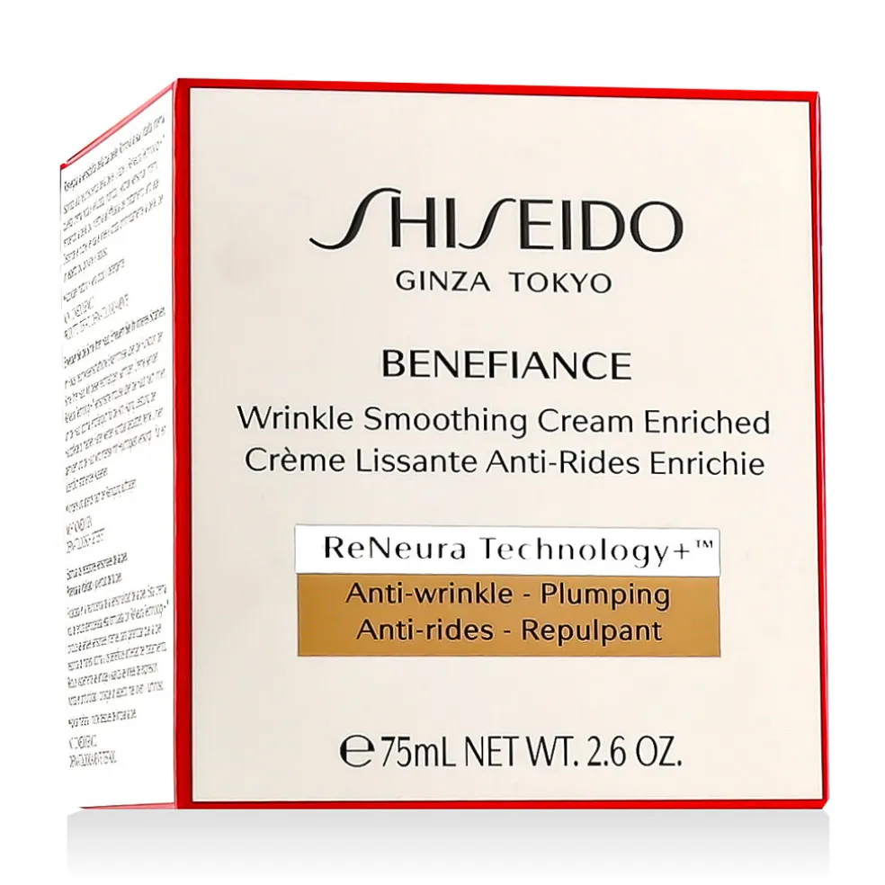 Shiseido Benefiance Wrinkle Smoothing Cream Enriched ist eine luxuriöse, intensiv nährende Gesichtscreme, die feine Linien und tiefe Falten bekämpft und gleichzeitig maximale Feuchtigkeit spendet. Diese reichhaltige Creme ist mit hochentwickelten Inhaltsstoffen angereichert, die die Kollagenproduktion ankurbeln und die Hautelastizität verbessern, so dass die Haut straffer, glatter und jugendlicher aussieht. Dank ihrer dickeren Textur ist sie ideal für trockene und sehr trockene Haut, die zusätzliche Nährstoffe und Pflege benötigt.