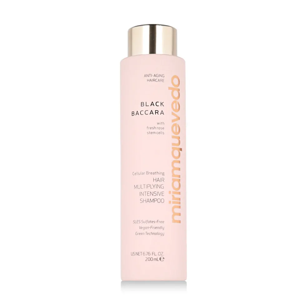 Miriam Quevedo Black Baccara Hair Multiplying Intensive Shampoo – Intensive Shampoo for Hair Growth ist eine luxuriöse Behandlung, die dank fortschrittlicher Biotechnologie und exklusiver Inhaltsstoffe Haardichte, -stärke und -wachstum fördert. Es enthält Black Baccara Rose, Stammzellen und Peptide, die die Kopfhaut revitalisieren und die Haarfollikel stärken – für sichtbar gesünderes und widerstandsfähigeres Haar.