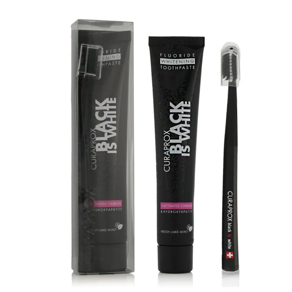 - Curaprox Black is White Whitening Zahnpasta 90 ml.
