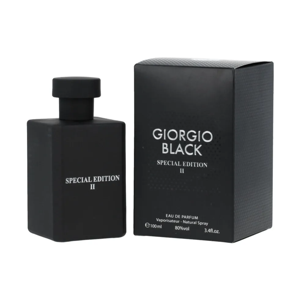 Giorgio Group Black Special Edition II ist ein Eau de Parfum, das Kraft, Raffinesse und zeitlose Eleganz verkörpert. Dieser Duft kombiniert würzige, holzige und orientalische Akkorde zu einer reichhaltigen und charismatischen Komposition, ideal für den selbstbewussten Mann. Es eröffnet mit intensiven Noten von Bergamotte, schwarzem Pfeffer und Kardamom, die dem Parfüm Glanz und Energie verleihen. In der Herznote entfaltet sich eine tiefgründige Mischung aus Lavendel, Leder und Patchouli, die dem Duft eine raffinierte Maskulinität und Sinnlichkeit verleiht. Die Basisnote ist warm und lang anhaltend und besteht aus Sandelholz, Ambra und rauchigem Vetiver, die dem Parfüm Eleganz und Stärke verleihen.