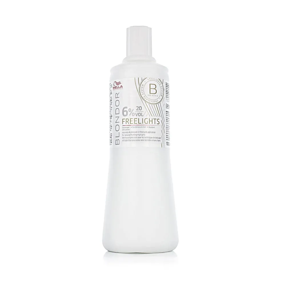 Wella Blondor Freelights Developer 6% 20 Vol 1000 ml ist eine oxidierende Emulsion zum Aufhellen des Haares, die speziell für Freihandtechniken wie Balayage oder Ombré entwickelt wurde. Sie enthält eine innovative Technologie, die eine präzise Kontrolle der Aufhellung und einen schonenden Umgang mit dem Haar gewährleistet. Seine cremige Konsistenz erleichtert das Auftragen und minimiert das Verlaufen, so dass man sich kreativ austoben kann. Dieser Entwickler ist ideal für die Verwendung mit dem Blondor Freelights Aufhellungspulver, mit dem er das perfekte Team für natürliche und gleichmäßige Ergebnisse bildet.