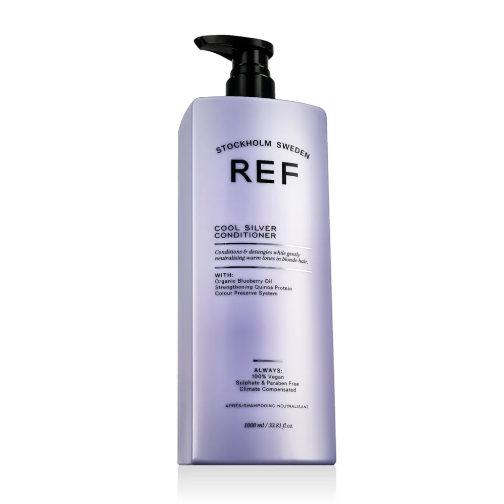 REF Cool Silver Conditioner 1000 ml ist ein neutralisierender Conditioner, der unerwünschte Gelb- und Warmtöne in hellem, grauem oder gebleichtem Haar reduziert. Dank des Gehalts an violetten Pigmenten und Quinoa-Protein wird das Haar nicht nur getönt, sondern auch intensiv genährt, befeuchtet und gestärkt. Nach der Anwendung ist das Haar glänzend, weich und vor dem Austrocknen geschützt.
