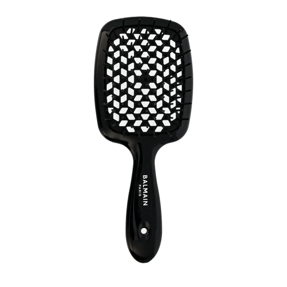 Die Balmain Hair Couture Detangling Brush ist eine luxuriöse Bürste zum gleichmäßigen Entwirren und sanften Peeling der Kopfhaut. Dank ihres einzigartigen Designs und der weichen, flexiblen Borsten gleitet sie sanft durch das Haar, entwirrt leicht Verfilzungen und verhindert Haarbruch. Diese Bürste eignet sich für alle Haartypen, auch für Extensions.