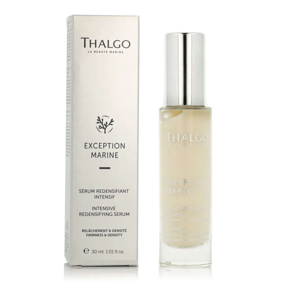 Thalgo Exception Marine Redensifying Cream – ist das erste marine Facelifting mit hautstraffender und volumengebender Wirkung. Die wirksame Formel erhöht die Festigkeit und Dichte der schlaffen Haut, stellt die Gesichtskonturen wieder her und füllt tiefe Falten auf. Diese sanfte Creme wurde speziell für normale bis trockene Haut formuliert. Ihre cremige Textur mit Lipid-Aminosäuren macht die Haut samtig weich. Der angenehme Duft weißer Blüten mit einem Hauch von Sandelholz sorgt für ein außergewöhnliches Erlebnis. Neben dem patentierten Marine Replenishment Complex®, der der Haut Festigkeit und Dichte verleiht, enthält diese Creme auch Süßholzextrakt zur Vereinheitlichung der Haut.