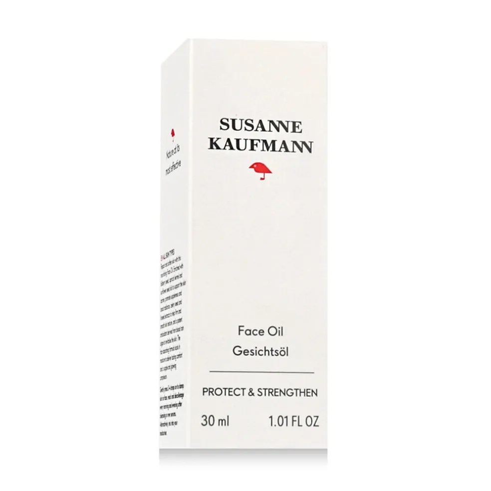 Susanne Kaufmann Face Oil 30 ml ist ein luxuriöses Gesichtsöl, das hilft, die Haut zu erneuern, weicher und fester zu machen. Dank seiner leichten Textur zieht es schnell ein und spendet intensive Pflege, Feuchtigkeit und Schutz. Es enthält Heidelbeersamenöl, Algenextrakte und einen Komplex aus Sellerie- und Leinsamenextrakten, die zusammenwirken, um die Festigkeit, Elastizität und allgemeine Gesundheit der Haut zu fördern.