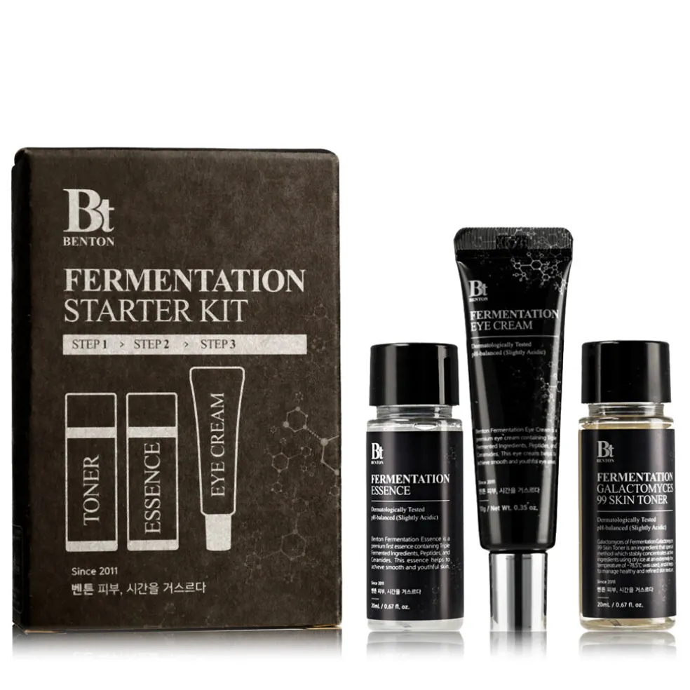 DasBENTON Fermentation Starter Kit ist ein praktisches Set mit drei luxuriösen Produkten aus der Fermentation-Serie, die die Haut umfassend pflegen. Der Hauptbestandteil aller Produkte ist fermentiertes Galactomyces-Filtrat, das die Haut intensiv pflegt, beruhigt und ihre Elastizität verbessert. Das Set ist ideal für die Reise, als Geschenk oder zum Ausprobieren der Produkte.