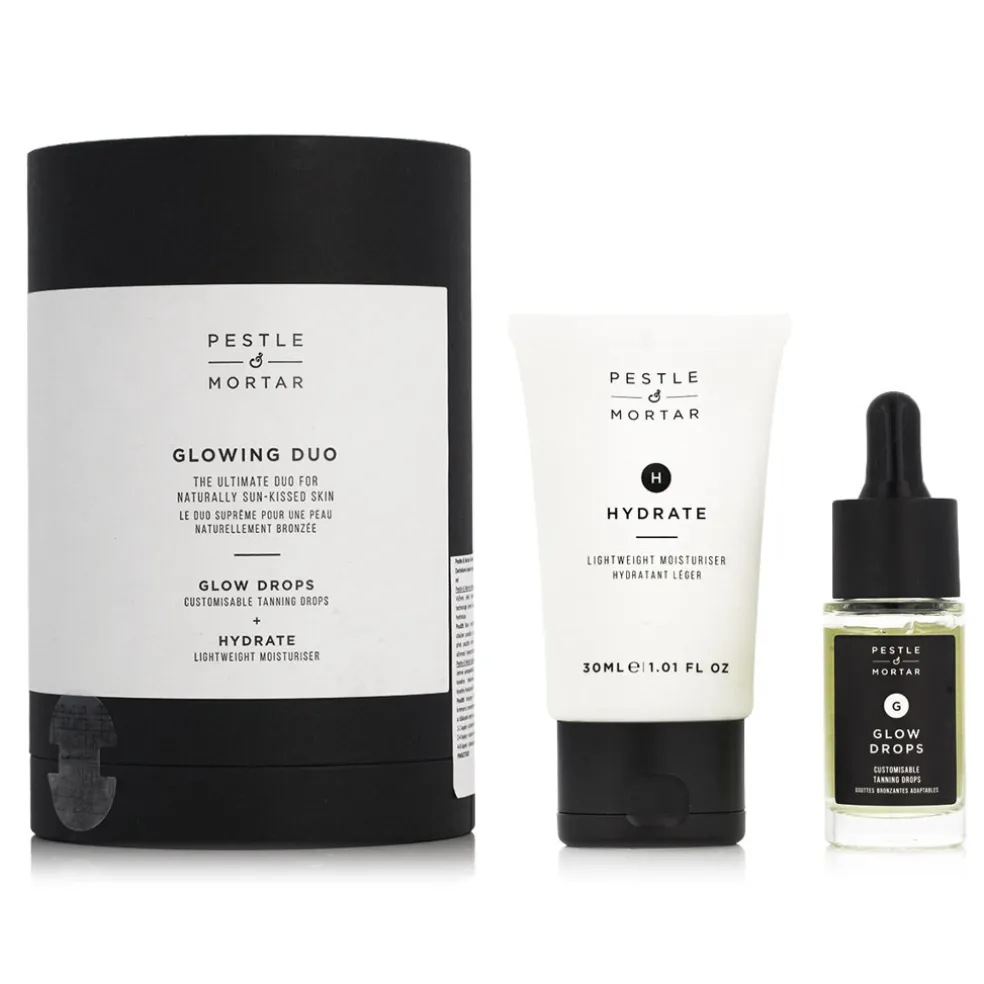 Holen Sie sich die perfekte natürliche Bräune und pflegen Sie gleichzeitig Ihre Haut mit dem exklusiven The Glowing Duo Set von Pestle & Mortar. Diese einzigartige Kombination aus einem Selbstbräunungsserum und einer leichten Feuchtigkeitscreme verleiht Ihrer Haut nicht nur eine schöne Bräune,ohne dass sie sich trocken anfühlt, sondern sorgt auch dafür, dass Ihre Haut perfekt mit Feuchtigkeit versorgt ist und strahlt.
