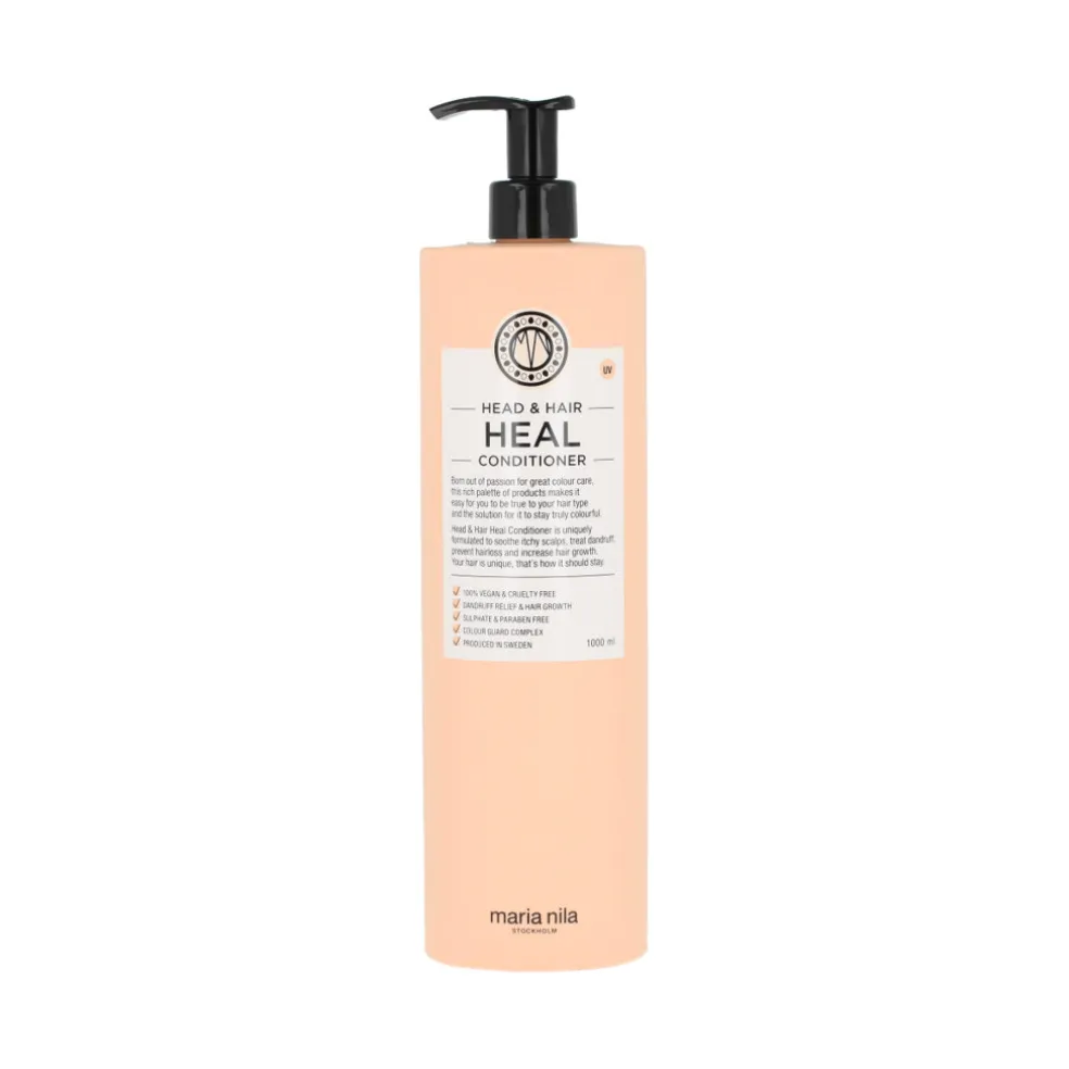 Maria Nila Head & Hair Heal Conditioner 1000 ml ist ein hochwirksamer Conditioner, der die Pflege des Head & Hair Heal Shampoos ergänzt. Sie konzentriert sich darauf, trockene Kopfhaut zu beruhigen, das Haarwachstum zu stimulieren und Haarausfall zu verhindern. Mit natürlichen Inhaltsstoffen wie Aloe Vera, Pyrocton-Olamin und Oleanolsäure hilft er, Schuppen zu reduzieren und den Gesamtzustand von Haar und Kopfhaut zu verbessern.