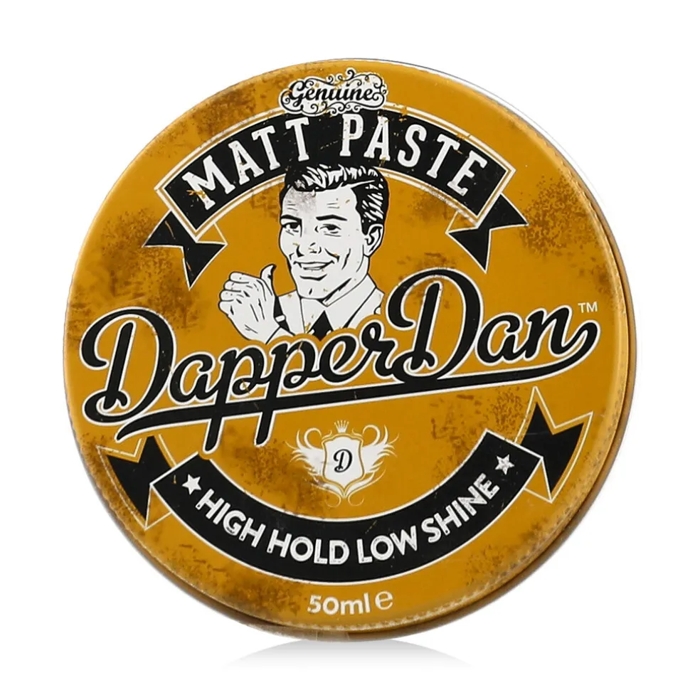 Dapper Dan High Hold Low Shine Matt Paste (50 ml) – eine strapazierfähige , mattierte Stylingpaste mit geringem Glanz, die einen flexiblen, schwerelosen Halt bietet. Ideal für moderne und klassische Frisuren, die Kontrolle und Form erfordern, aber einen natürlichen Look erhalten sollen. Einfach aufzutragen, den ganzen Tag über zu bearbeiten und ohne Rückstände auszuwaschen.