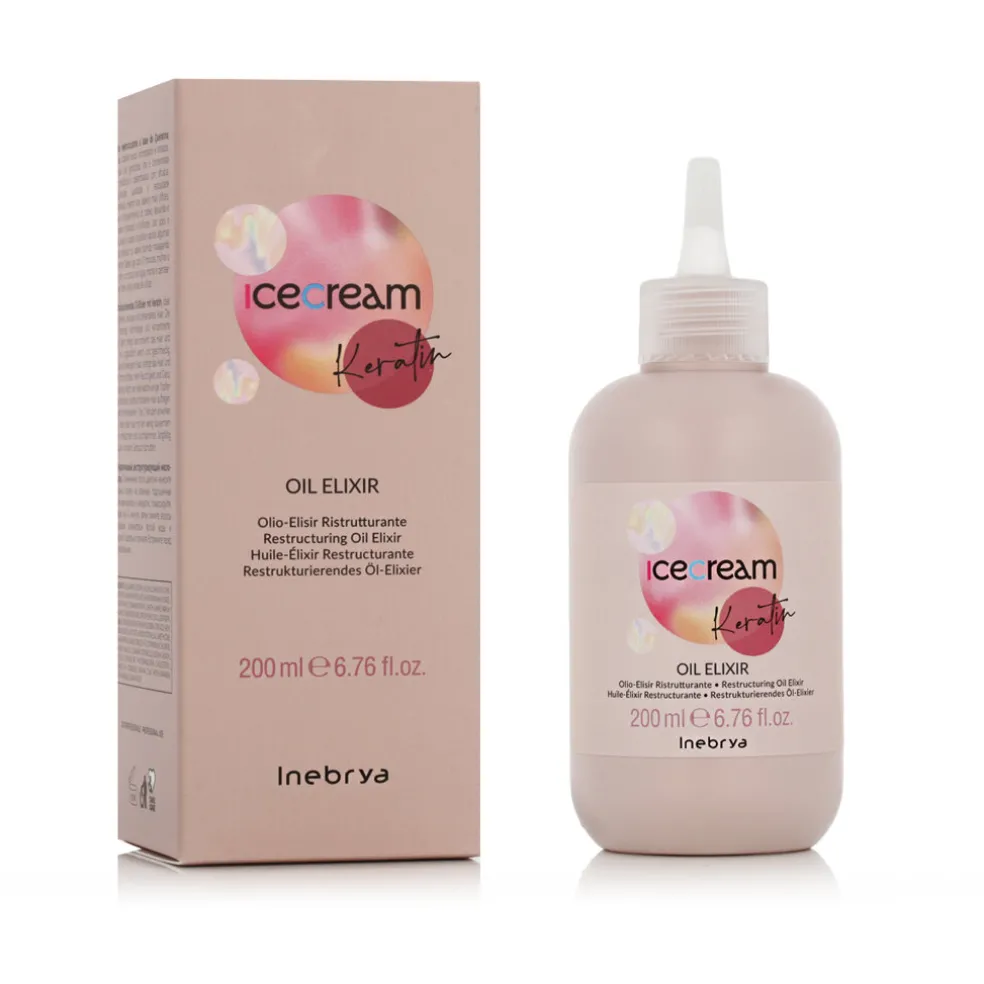 Inebrya Ice Cream Keratin Oil Elixir 200 ml ist ein restrukturierendes Öl-Elixier mit Keratin und Macadamia-Öl, das für die Pflege von trockenem, lockigem, coloriertem und chemisch behandeltem Haar entwickelt wurde. Die nicht fettende Formel regeneriert und stärkt die innere Struktur des Haares und macht es hydratisiert, weich und strahlend glänzend. Das Elixier erleichtert außerdem das Entwirren und schützt das Haar vor Schäden.