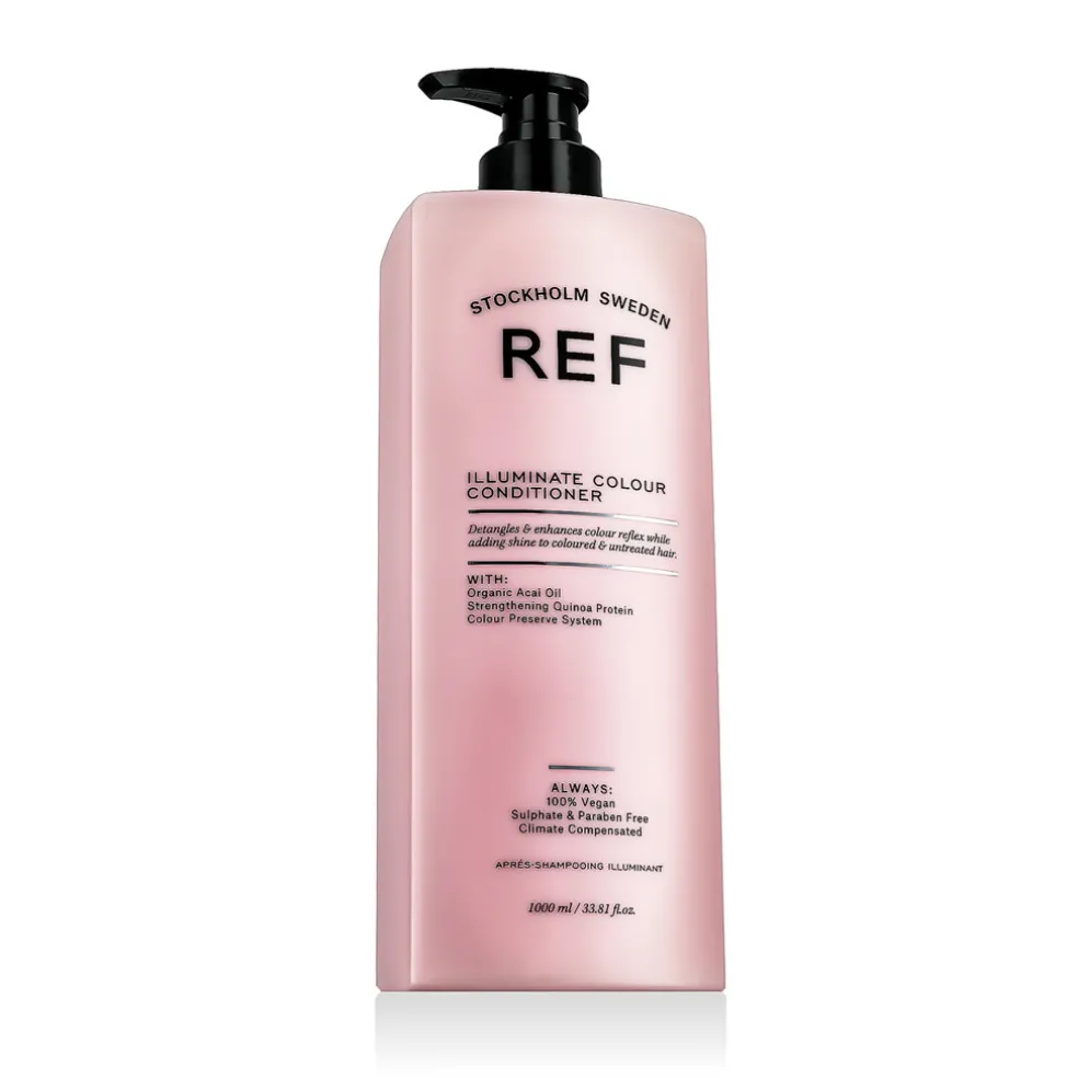 REF Illuminate Colour Conditioner 1000 ml ist eine nährende Pflegespülung, die speziell für coloriertes Haar entwickelt wurde. Sie enthält Quinoa-Protein und Sonnenblumenkern-Extrakt, um die Farbe vor dem Verblassen zu schützen, dem Haar einen intensiven Glanz zu verleihen und sein gesundes Aussehen zu erhalten. Nach der Anwendung ist das Haar weich, mit Feuchtigkeit versorgt und vor äußeren Einflüssen geschützt.