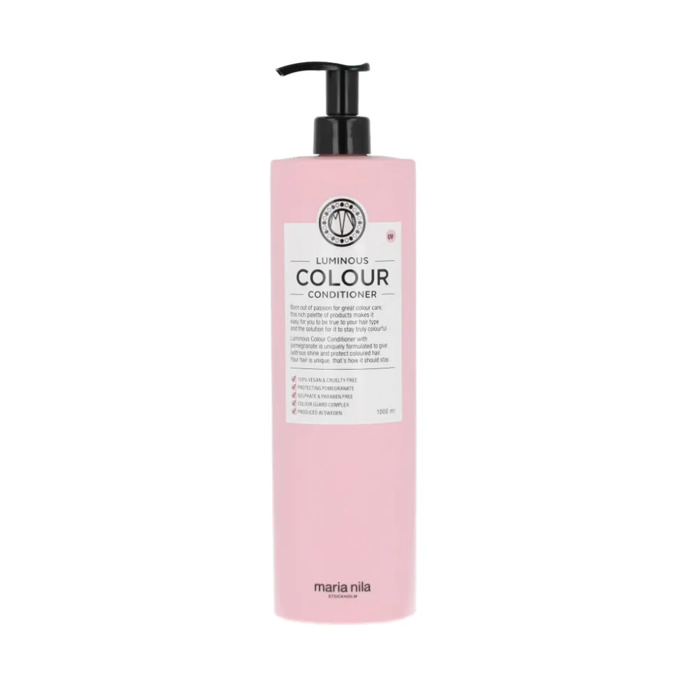 Maria Nila Luminous Colour Conditioner 1000 ml ist eine feuchtigkeitsspendende Pflegespülung, die speziell für coloriertes Haar entwickelt wurde. Angereichert mit Granatapfelextrakten und dem Colour Guard-Komplex schützt die Formel das Haar vor dem Verblassen, stärkt seine Struktur und verleiht ihm einen strahlenden Glanz. Diese Pflegespülung ist die ideale Wahl, um die Gesundheit und Intensität von coloriertem Haar zu erhalten.