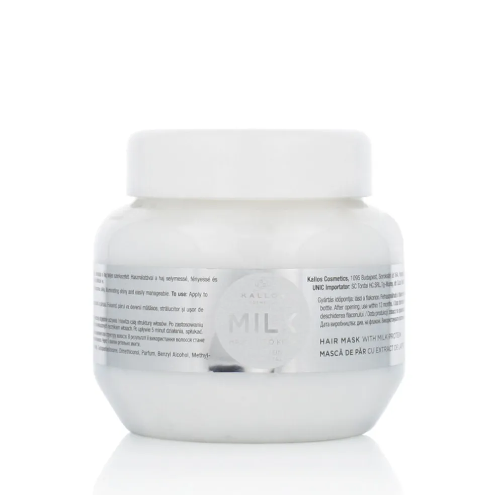 Die Kallos Milk Hair Mask 275 ml ist eine nährende Haarmaske mit Milchproteinen, die eine intensive Pflege für trockenes, strapaziertes und geschädigtes Haar bietet. Dank des Gehalts an Milchproteinen, die für ihre feuchtigkeitsspendende und regenerierende Wirkung bekannt sind, stellt die Maske die natürliche Struktur der Haarfaser wieder her, verleiht Geschmeidigkeit, Glanz und fördert die Elastizität, ohne das Haar zu beschweren.