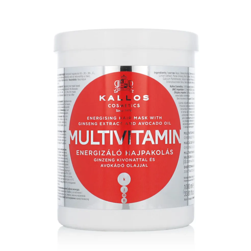 Kallos Multivitamin Energising Hair Mask 1000 ml ist eine energiespendende Haarmaske mit einem Multivitaminkomplex, der schwaches, müdes und geschädigtes Haar wieder vitalisiert und stärkt. Sie enthält die Vitamine A, B1, B2, B3, B5, B6, C, E und H zur Stärkung der Haarfaser, zur Förderung eines gesunden Haarwachstums und zur Verbesserung des Aussehens und der Textur des Haares.