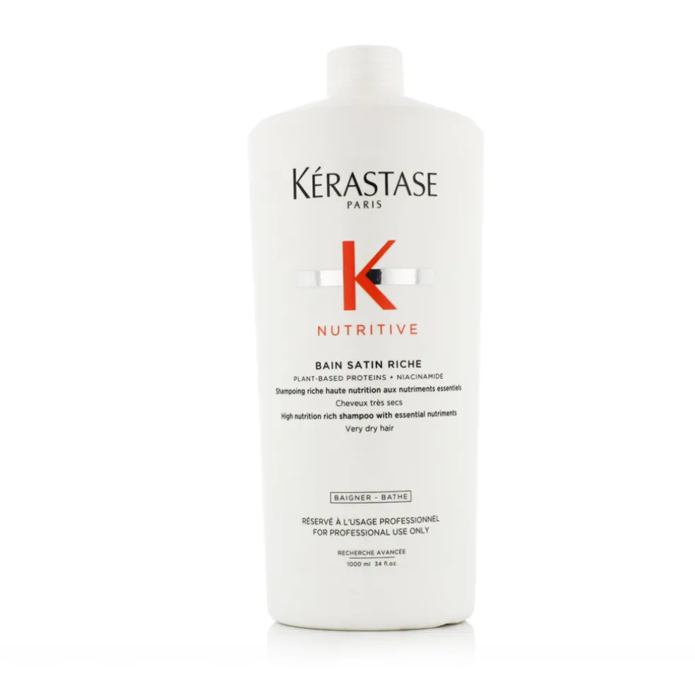 Verwöhnen Sie sehr trockenes Haar mit intensiver Pflege mit dem Kérastase Nutritive Bain Satin Riche Shampoo. Dieses nährende Shampoo ist ideal für dickes, trockenes Haar, das tiefgehende Hydratation und Wiederherstellung benötigt. Es enthält pflanzliche Proteine, Niacinamid und Lipide, die die Kopfhaut wirksam reinigen und die Haarfaser nähren und stärken. Seine dicke, cremige Textur erzeugt einen reichhaltigen Schaum, der dem Haar Geschmeidigkeit, Elastizität und gesunden Glanz zurückgibt.